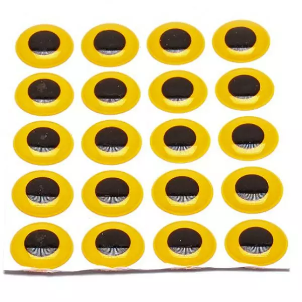 Doordat ze zelfklevend zijn is het gemakkelijk om deze ogen aan te brengen voor je ze bekleed met epoxy of een UV coating.
